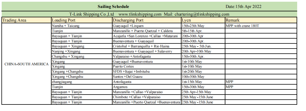 if any inquiry, pls send to chartering@tlinkshipping.com